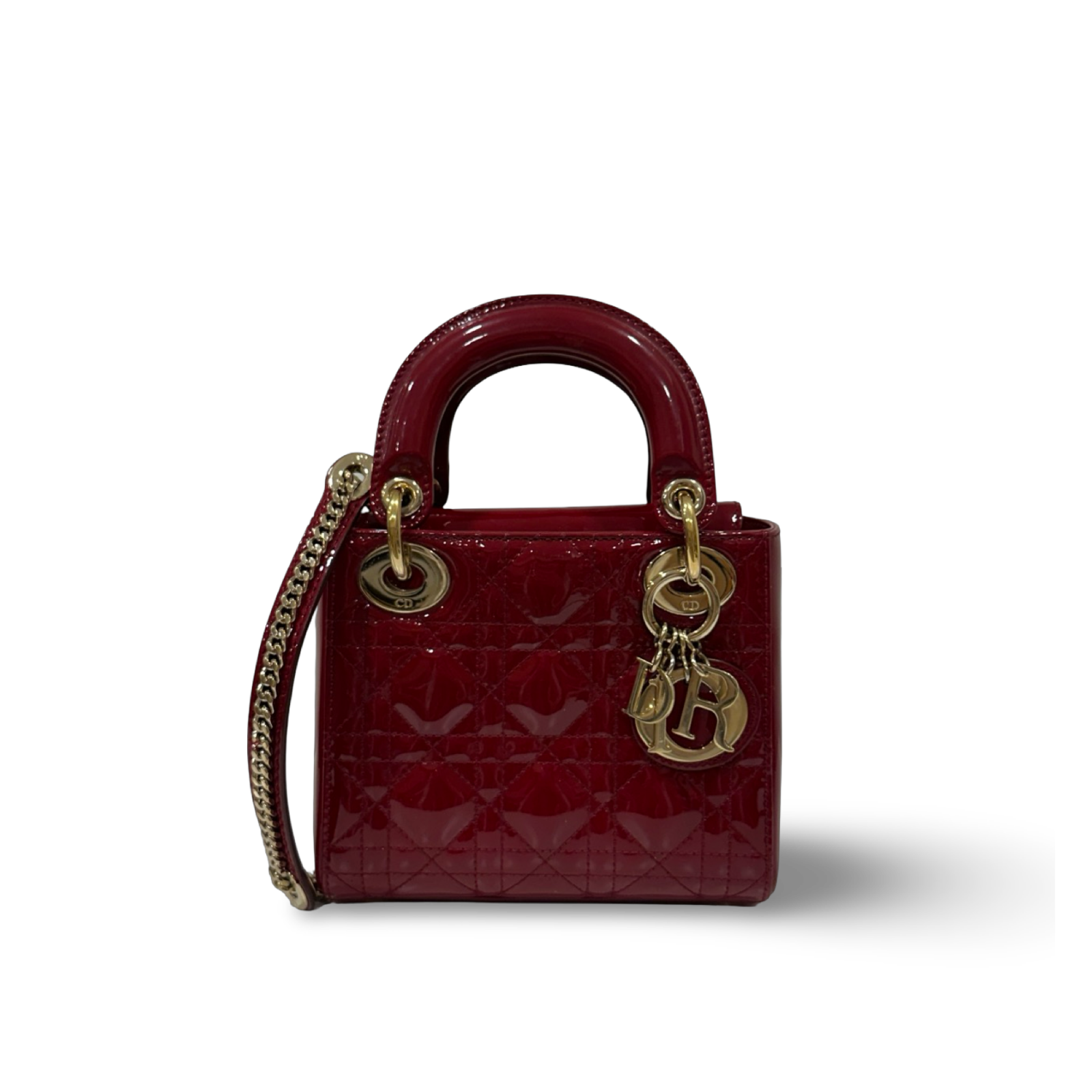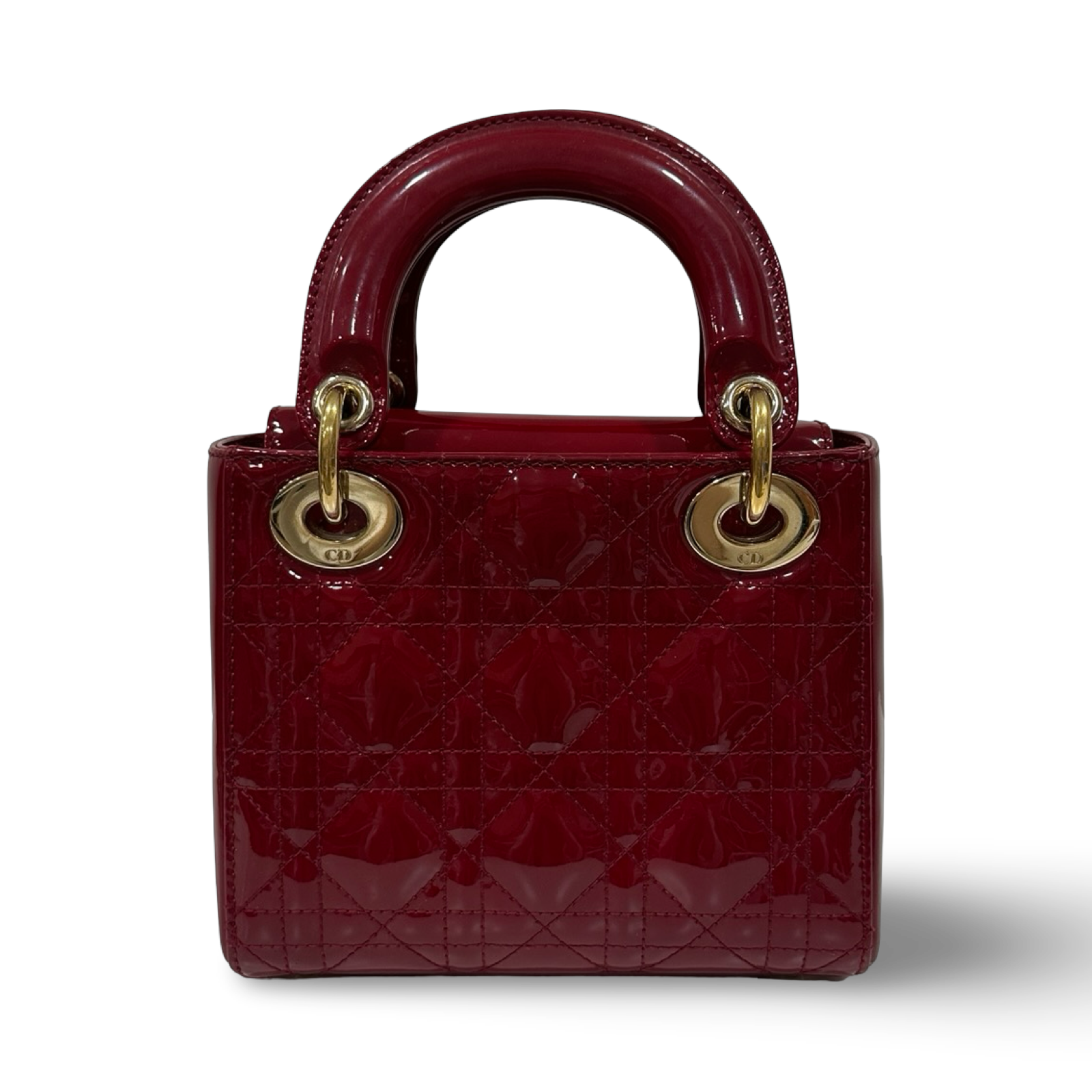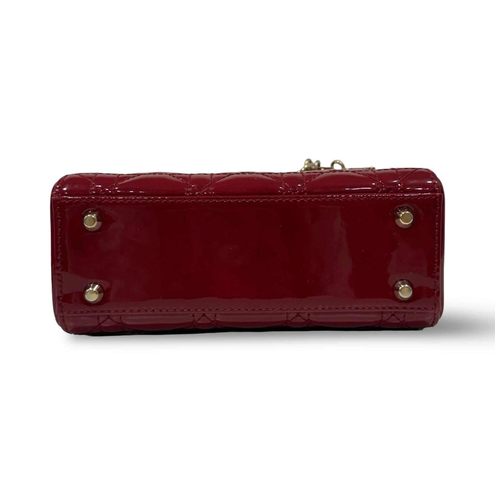 Dior Cannage Patent Mini Lady Dior - GHW / Red