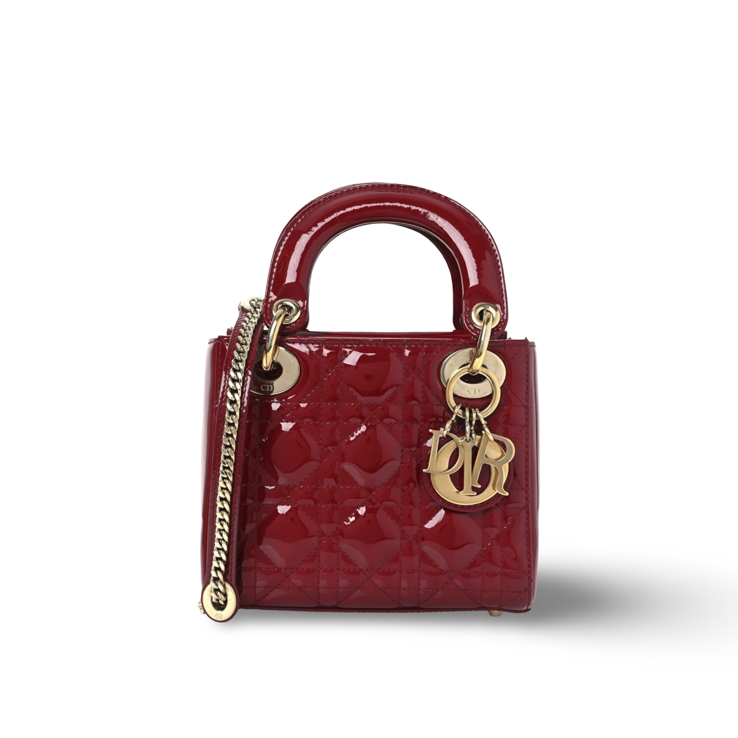 Dior Cannage Patent Mini Lady Dior - GHW / Red