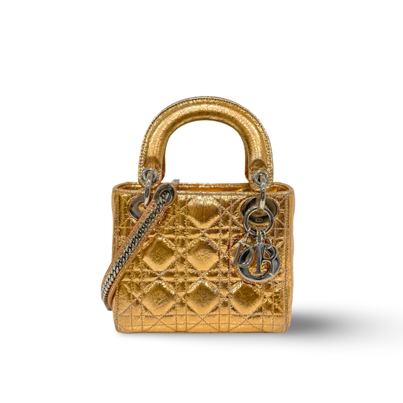 Dior Cannage Shinny Calfskin Mini Lady Bag - SHW / Rose Gold (60%)