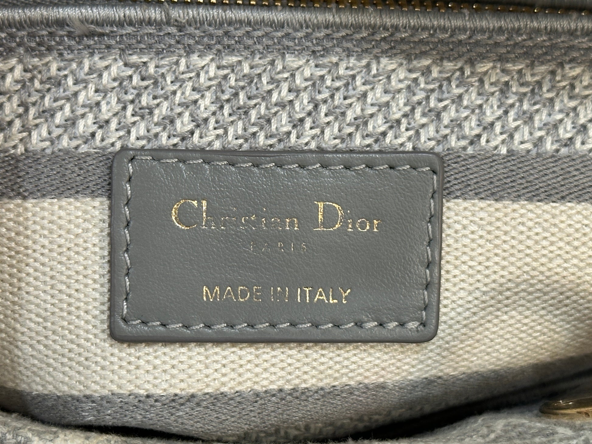 Dior Canvas Toile De Jouy Reverse Embroidered Medium Lady D-Lite Bag Gray