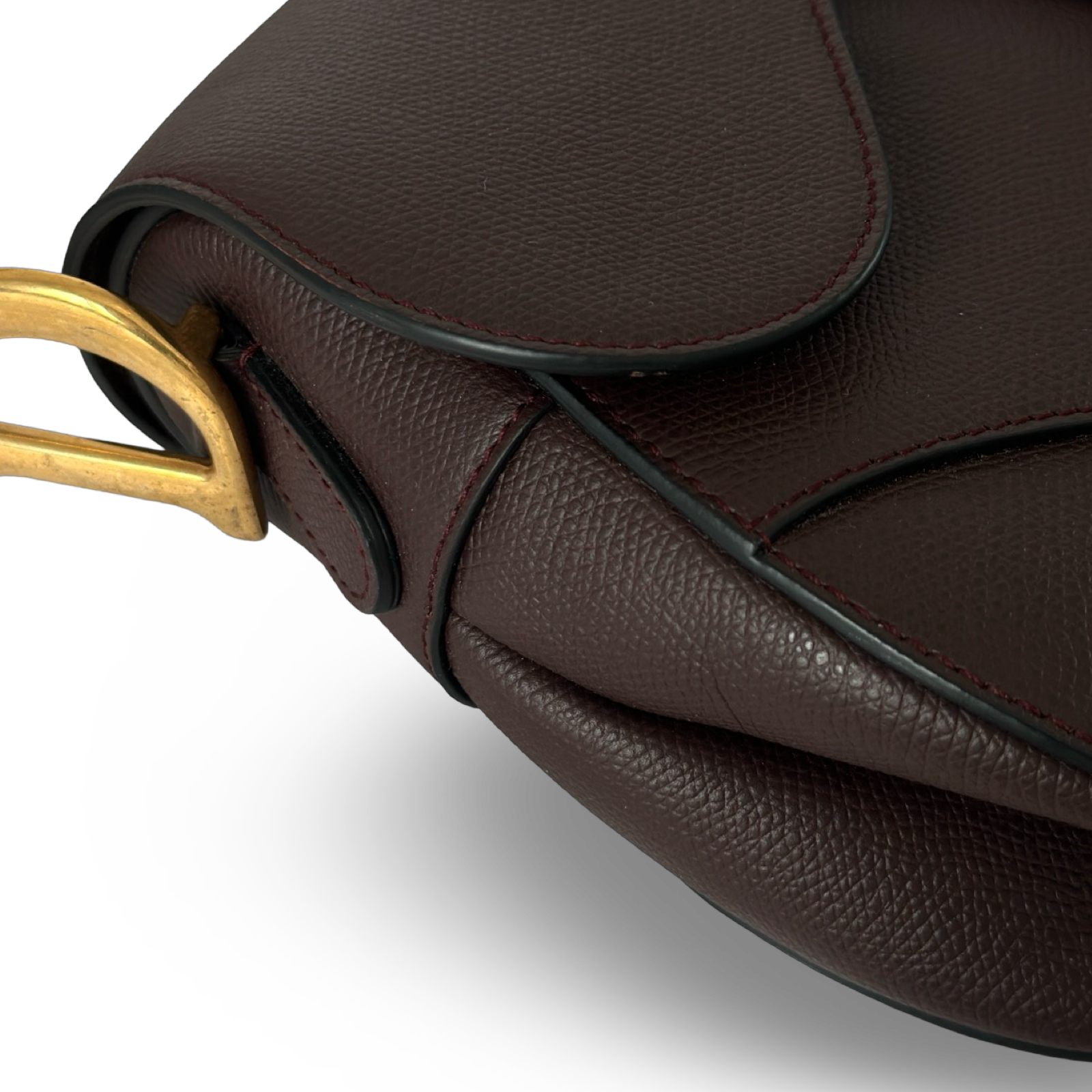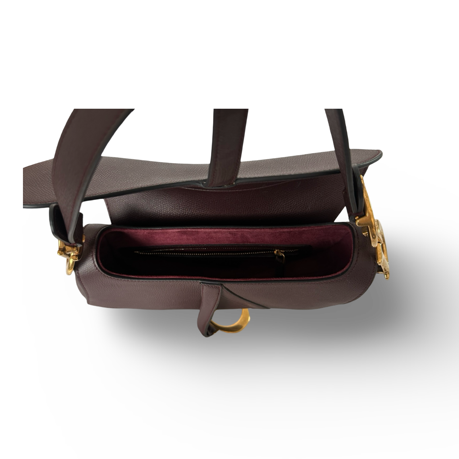 Dior Caviar Medium Saddle Bag w/ Logo Strap - GHW / Burgundy