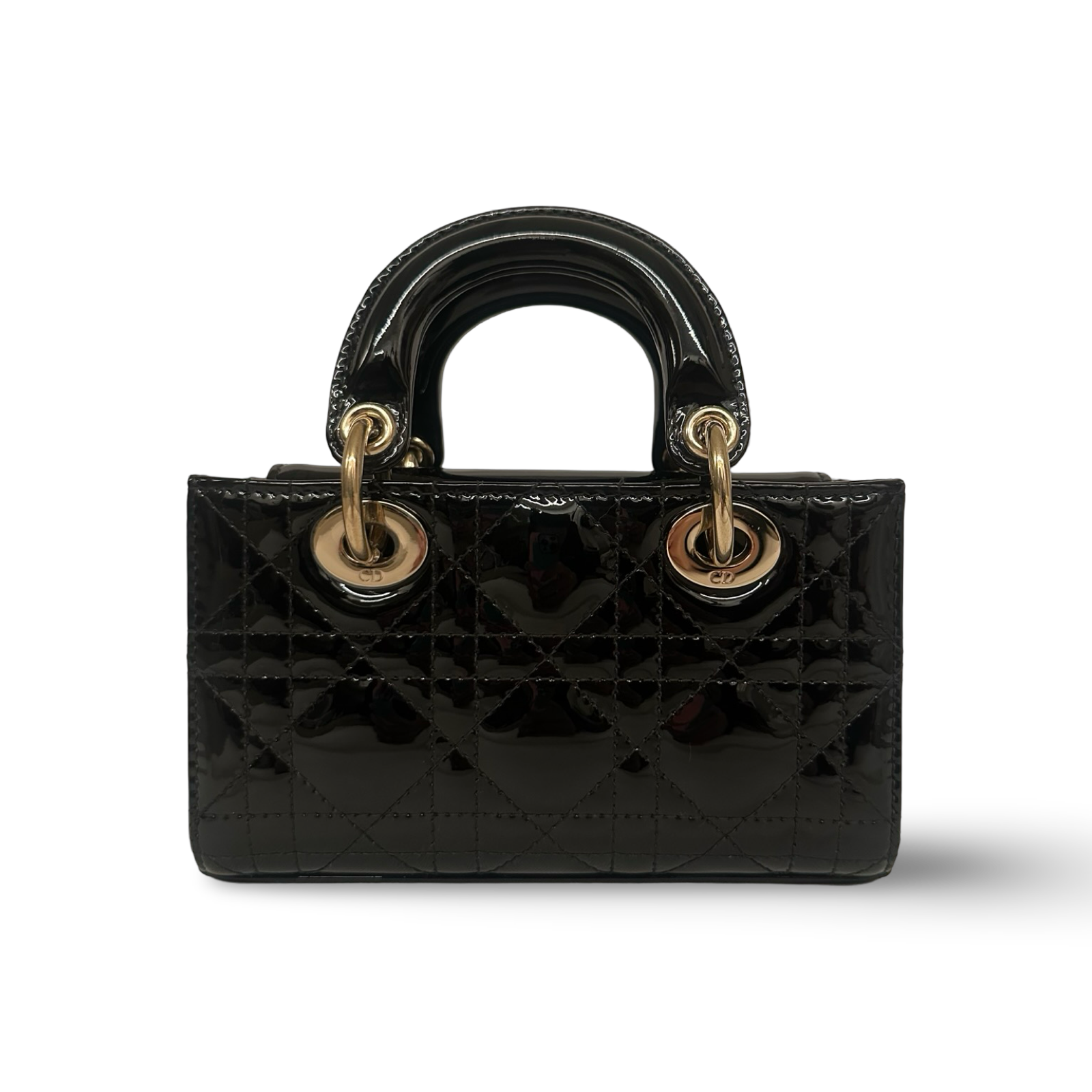 Dior Classic Patent Mini D-Joy Lady Bag - GHW / Black