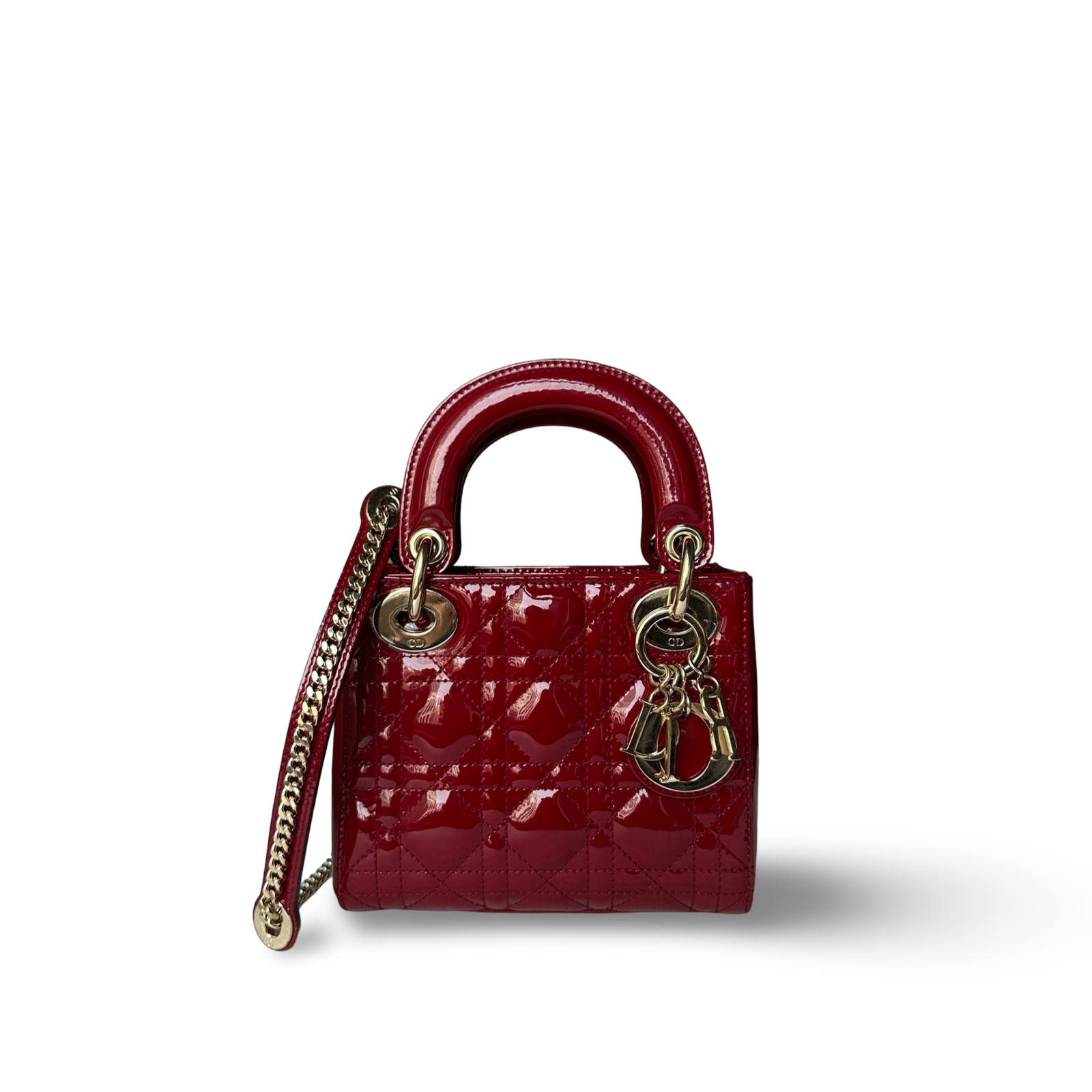 Dior Classic Patent Mini Lady Bag - GHW / Red