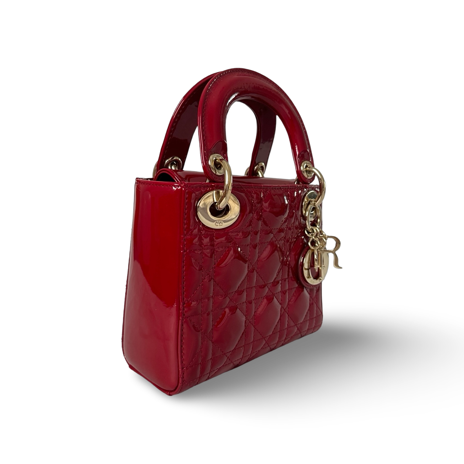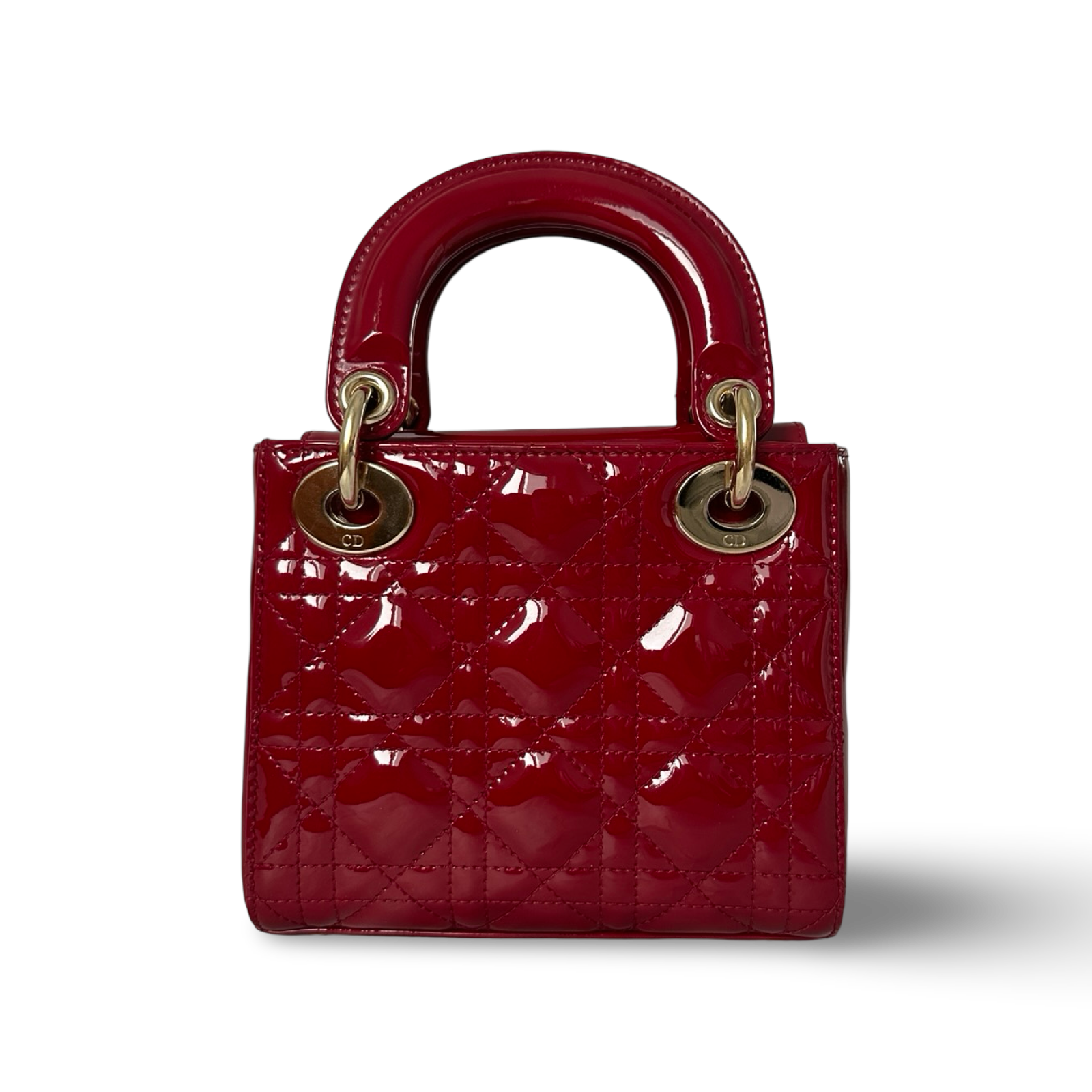 Dior Classic Patent Mini Lady Bag - GHW / Red