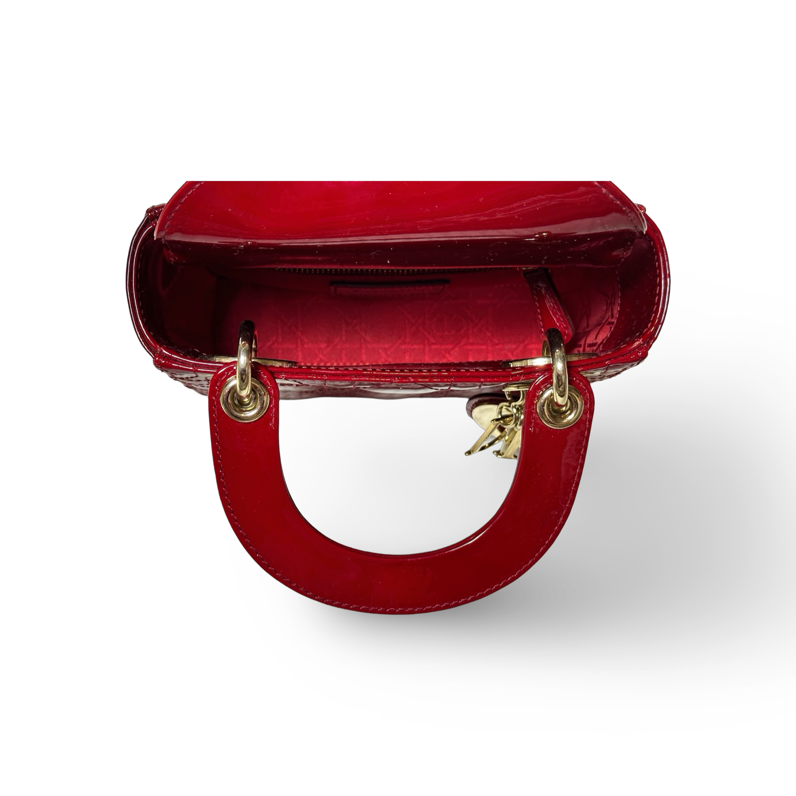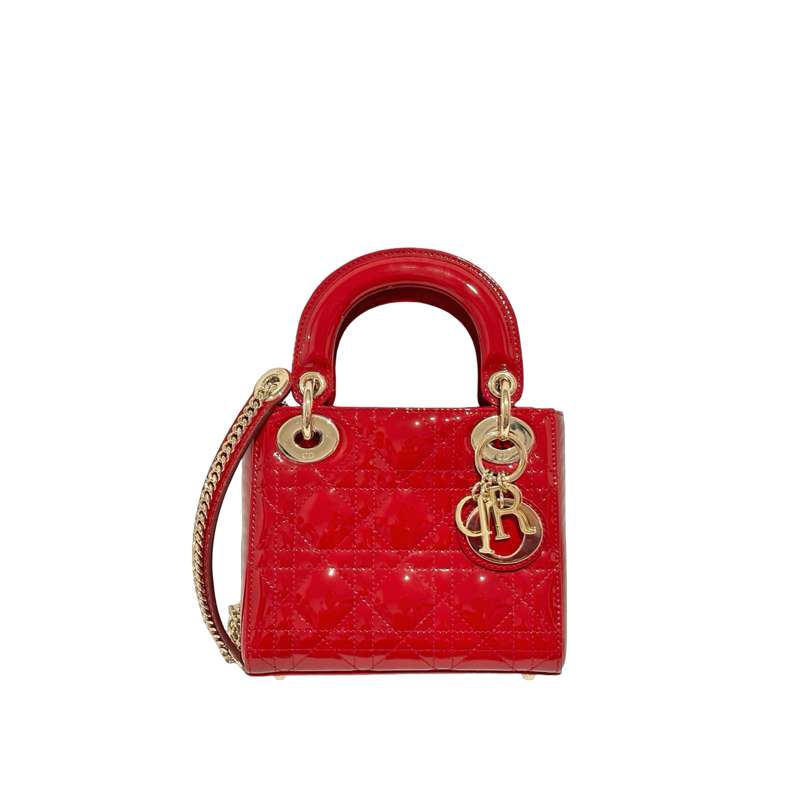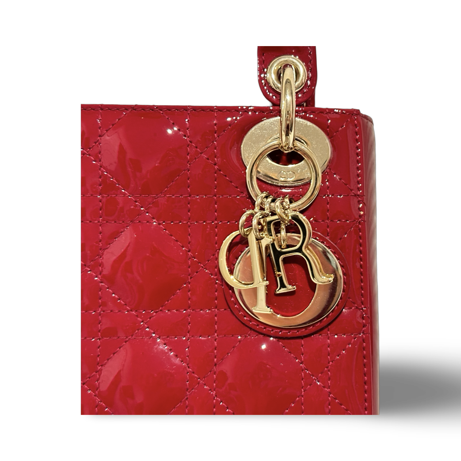 Dior Classic Patent Mini Lady Bag - Gold / Red