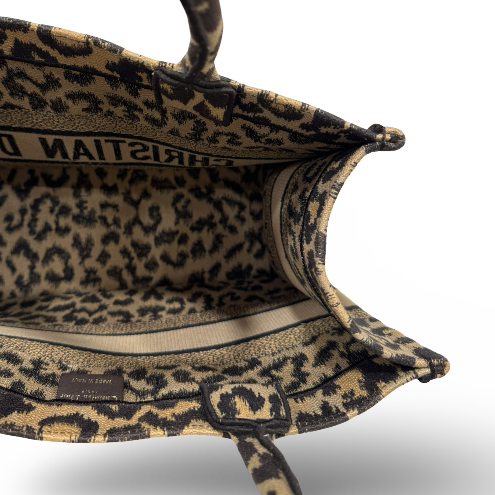 Dior Embroieder Canvas Medium Leopard Tote - Brown