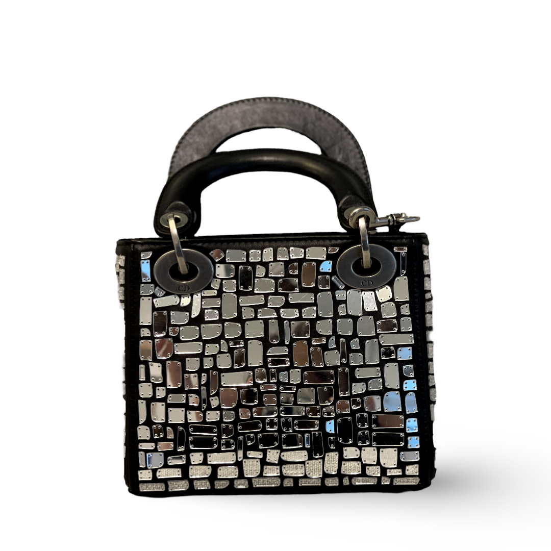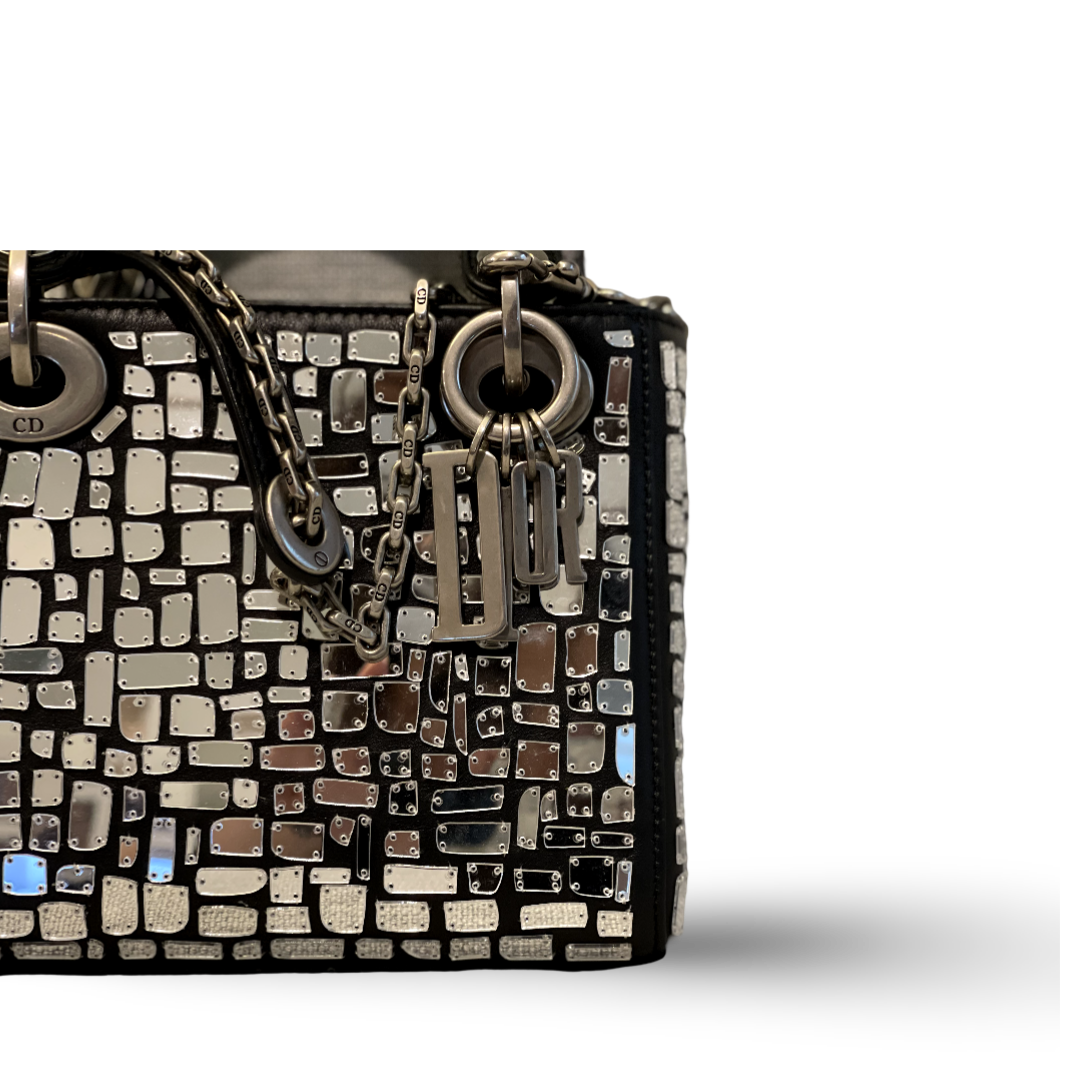 Dior Mirror Mosiac Calfskin Mini Lady Black Bag