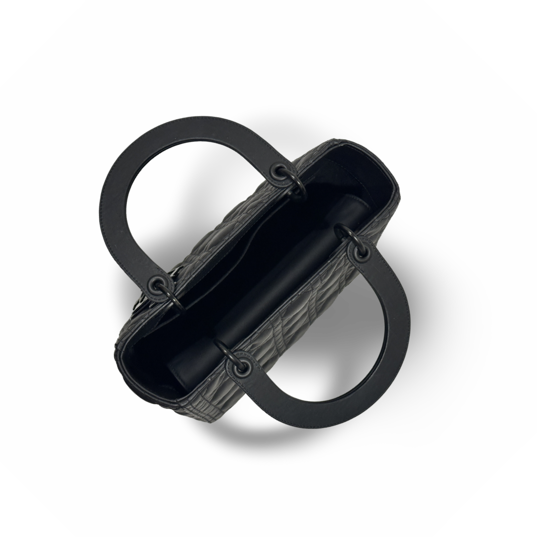 Dior Calfskin Cannage Ultra Matte Medium Lady Black Bag