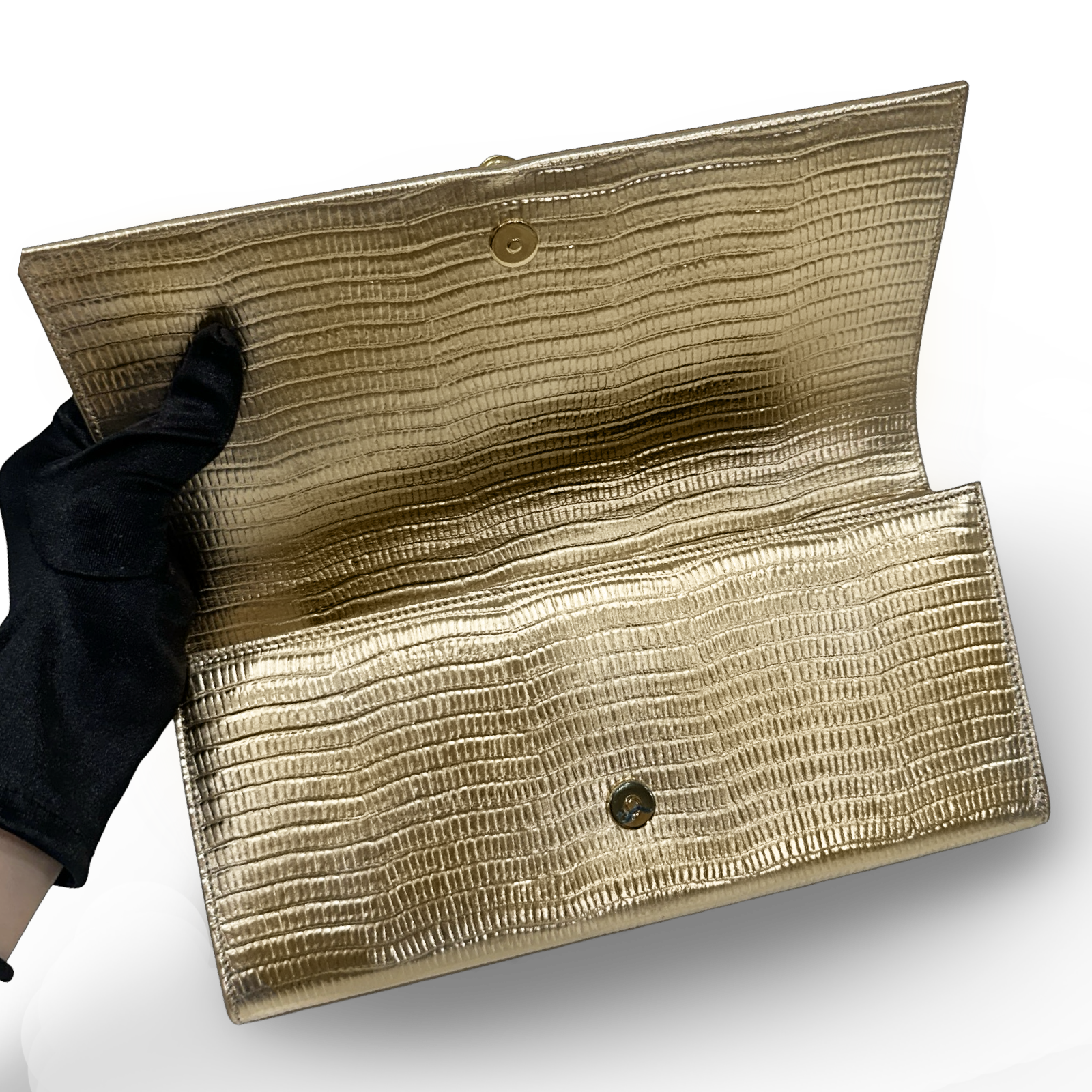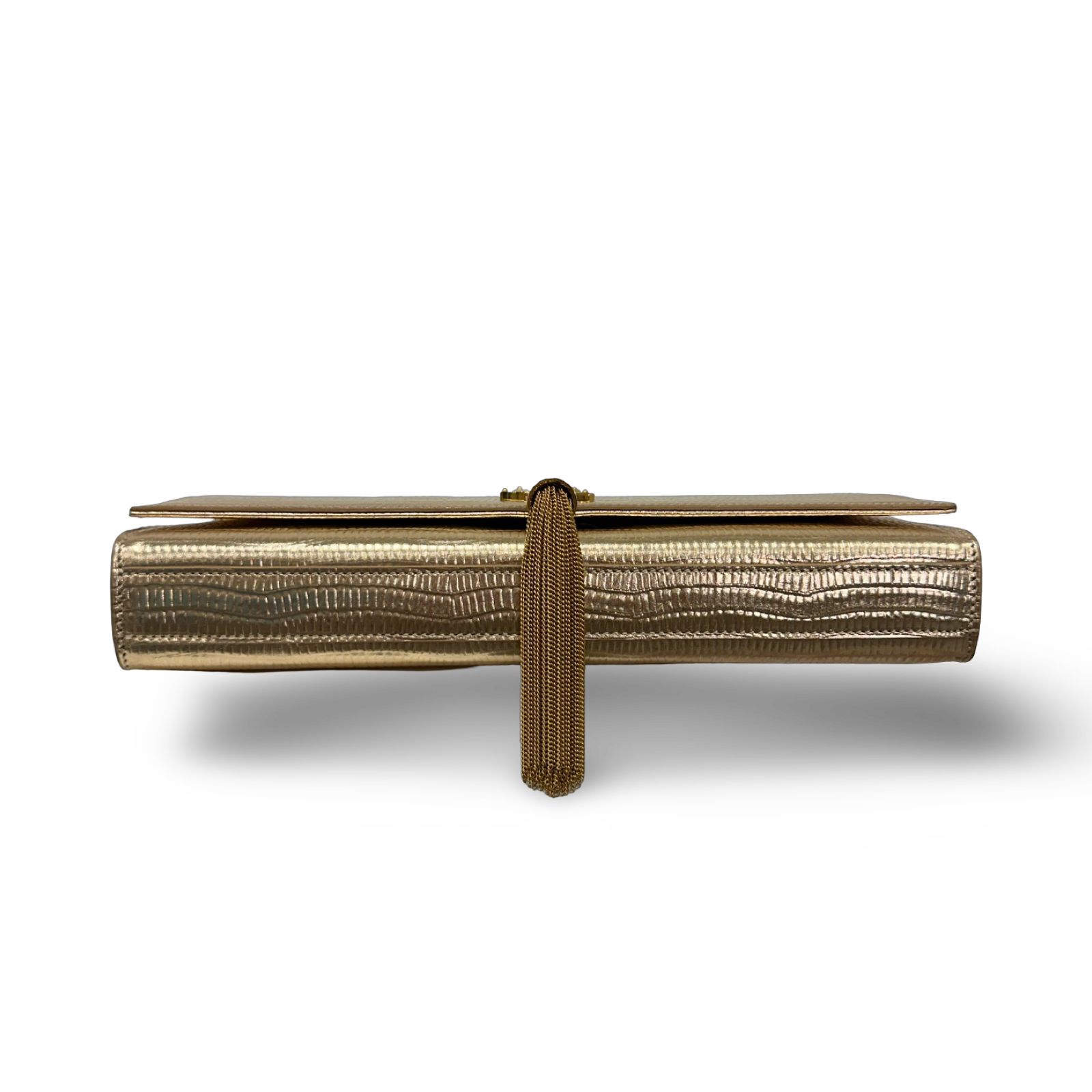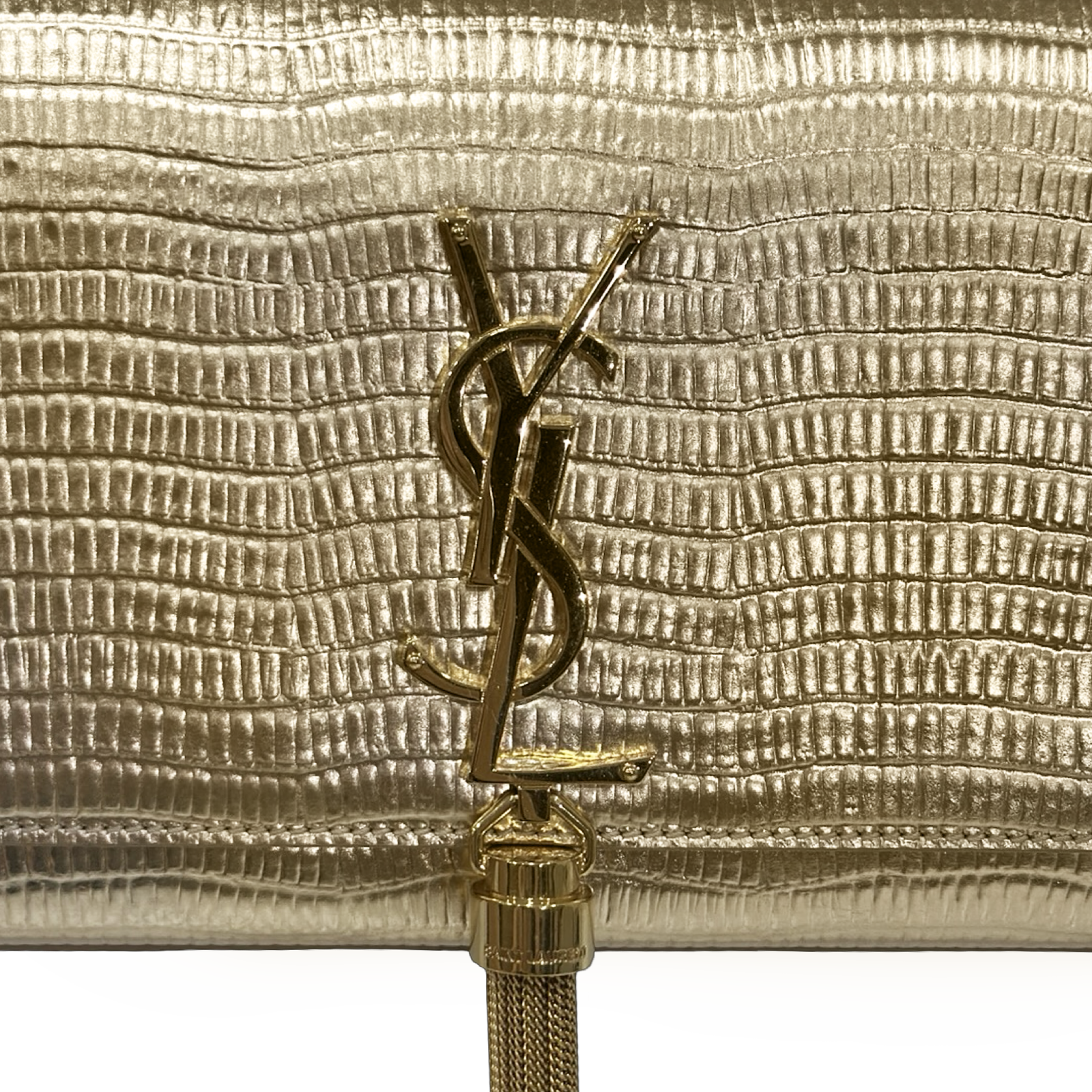 Saint Laurent Metallic Lizard Embossed Monogram Kate Tassel Clutch - GHW / Gold