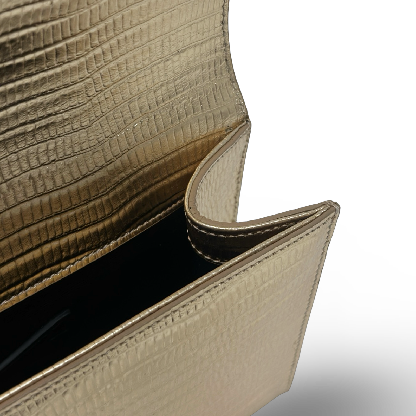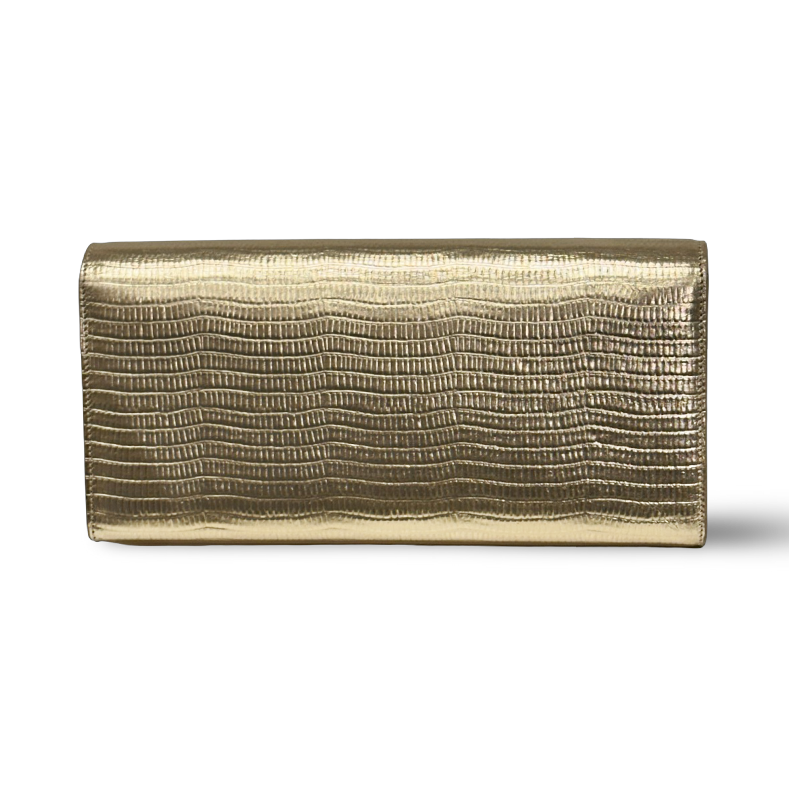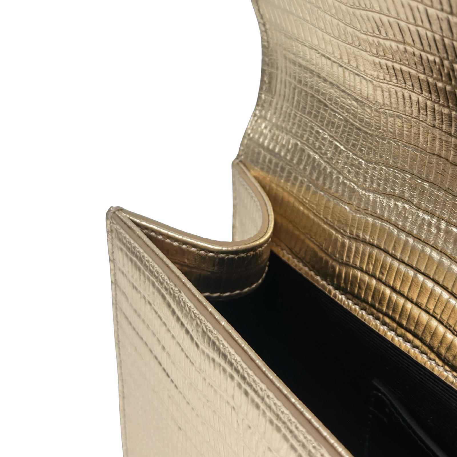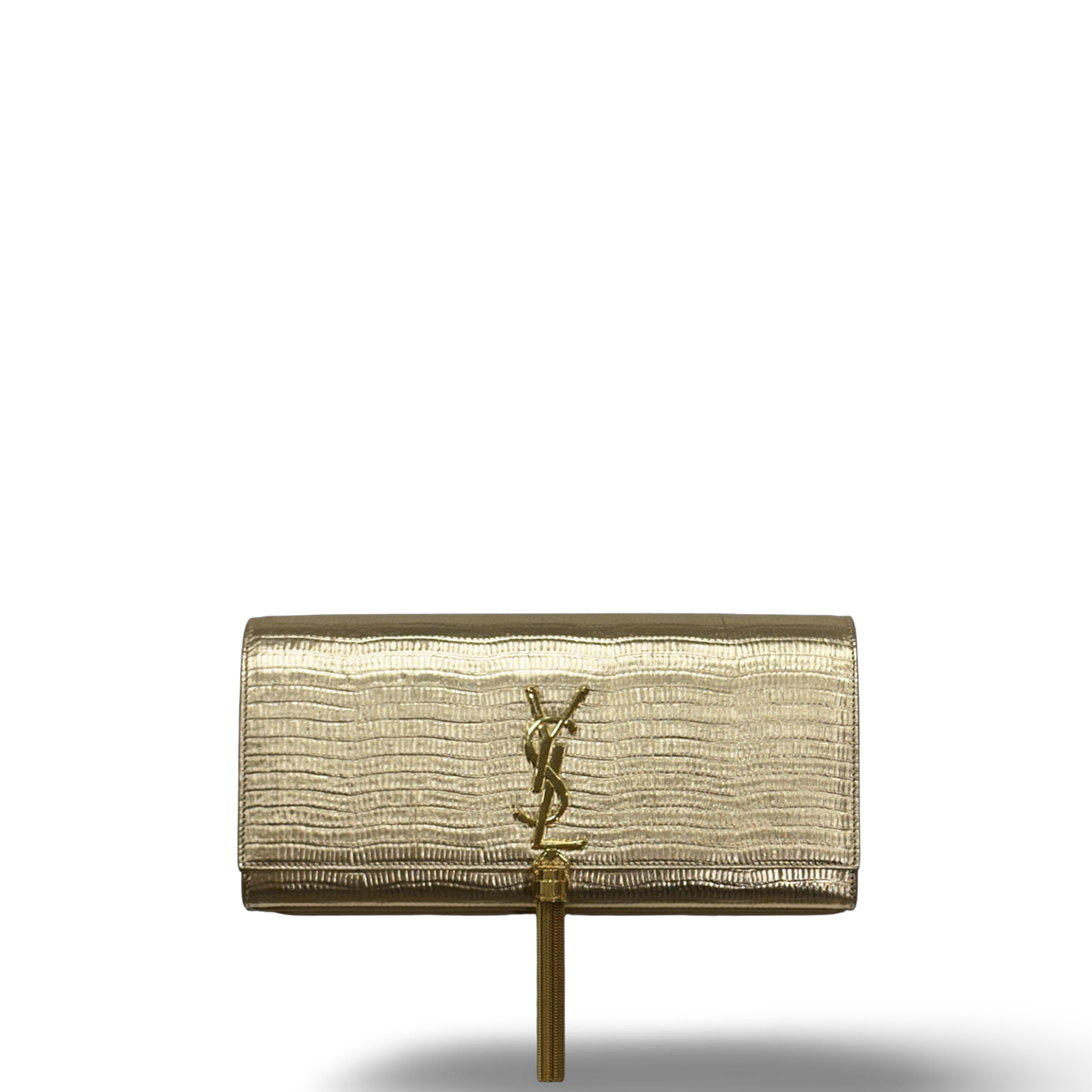 Saint Laurent Metallic Lizard Embossed Monogram Kate Tassel Clutch - GHW / Gold