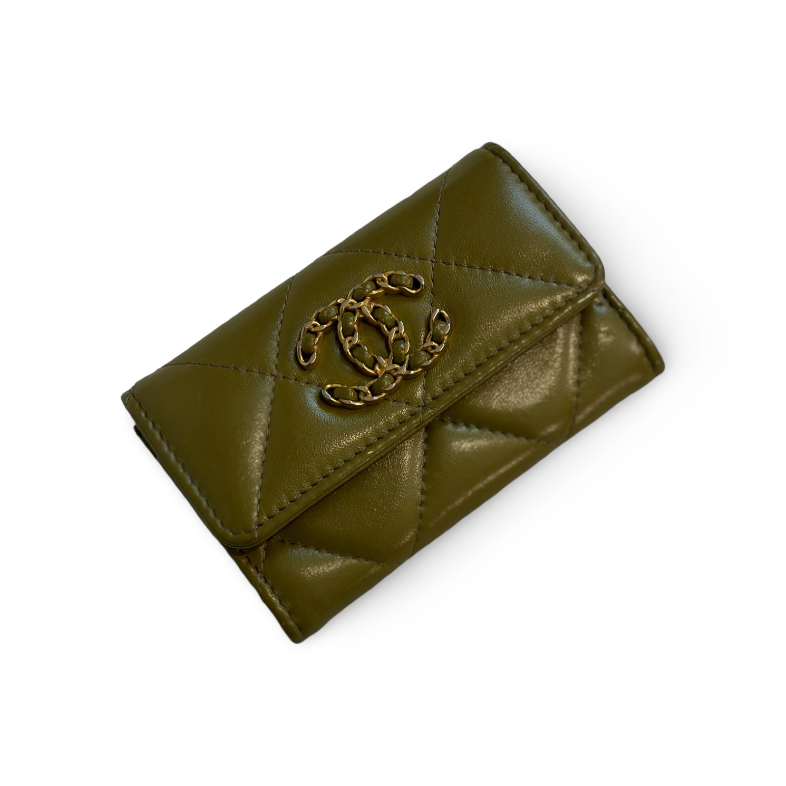 Chanel 19 Flap Card Holder Olive Green