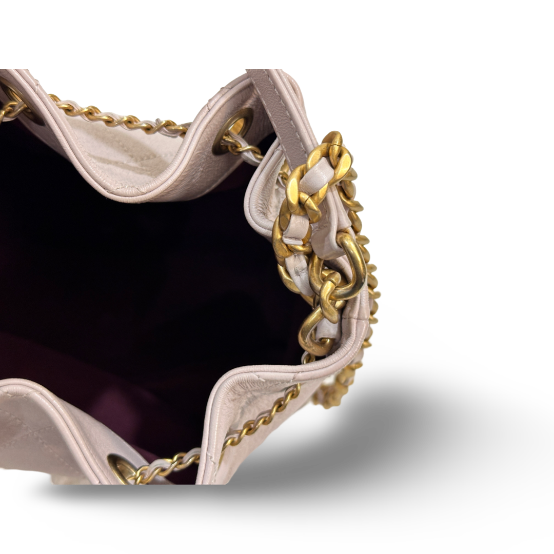 Chanel Lambskin Drawstring Bucket Bag Light Pink