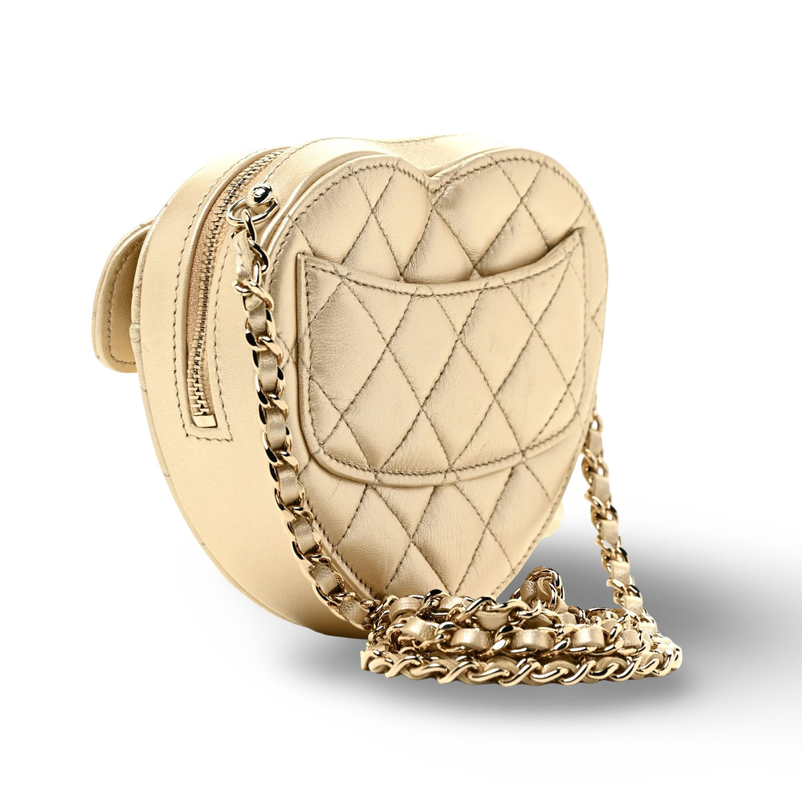 Chanel Quilted Lambskin Metallic CC In Love Heart Clutch With Chain - GHW / Gold