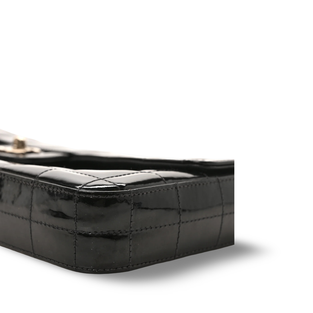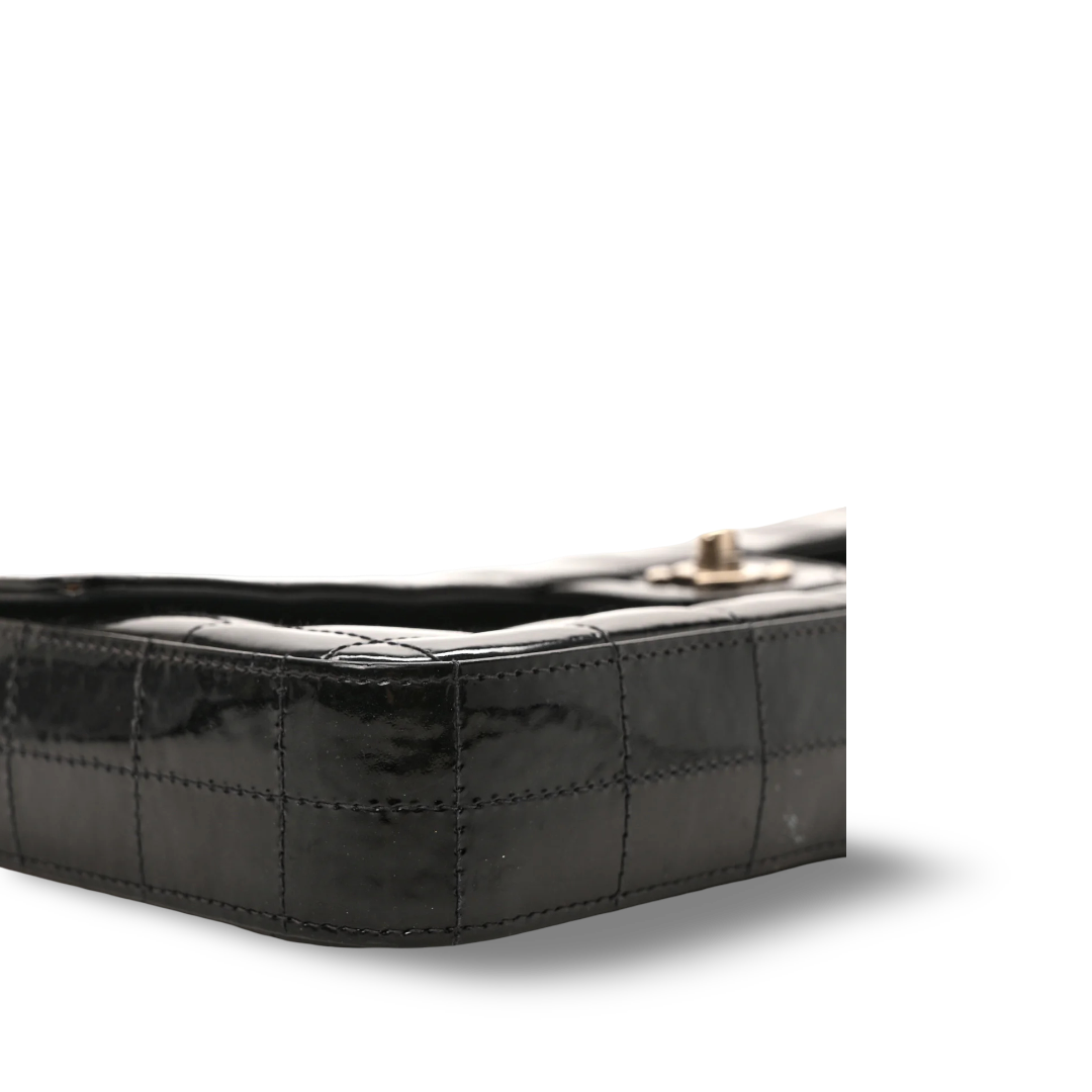 Chanel Quilted Patent East West Chocolate Bar Flap - SHW/ Black