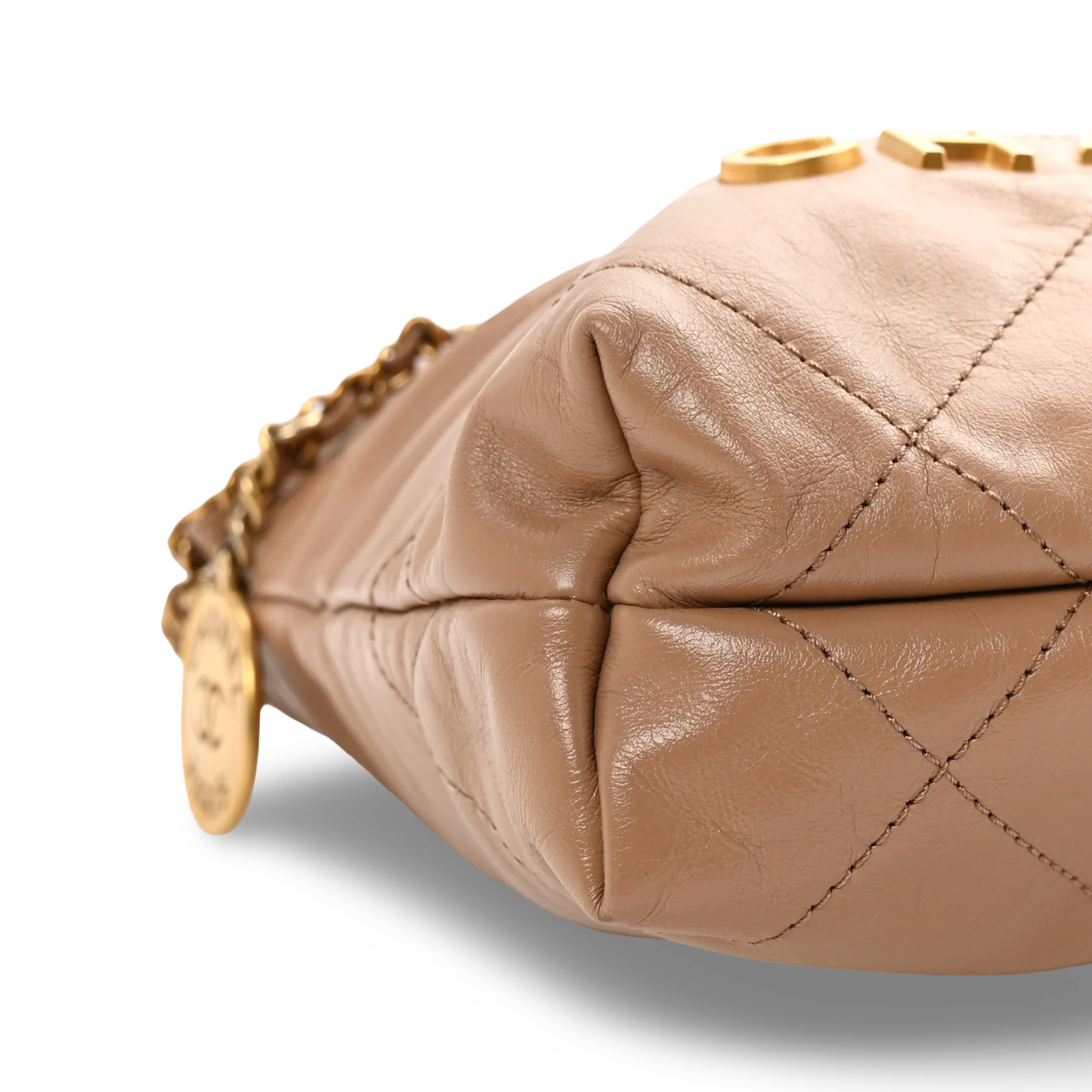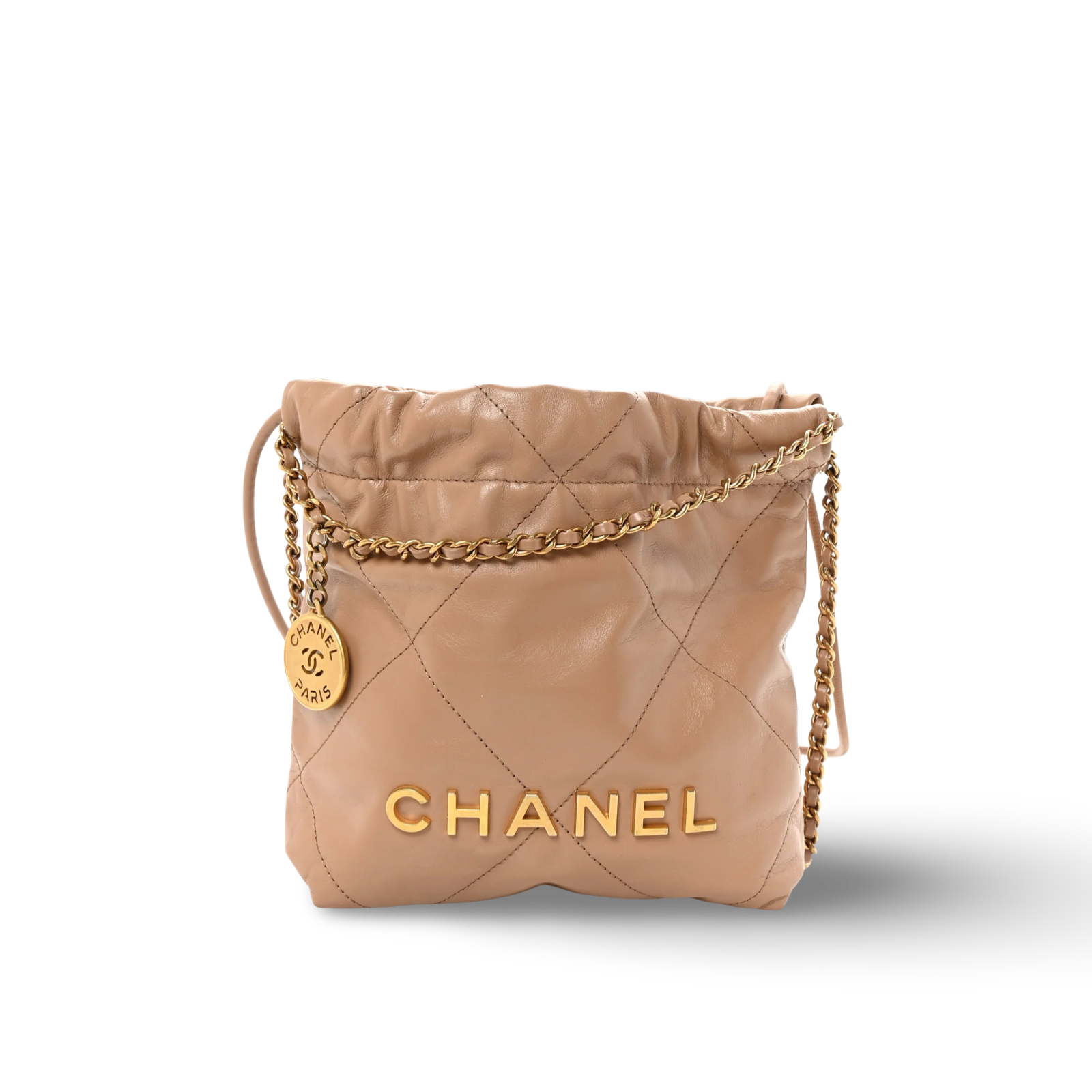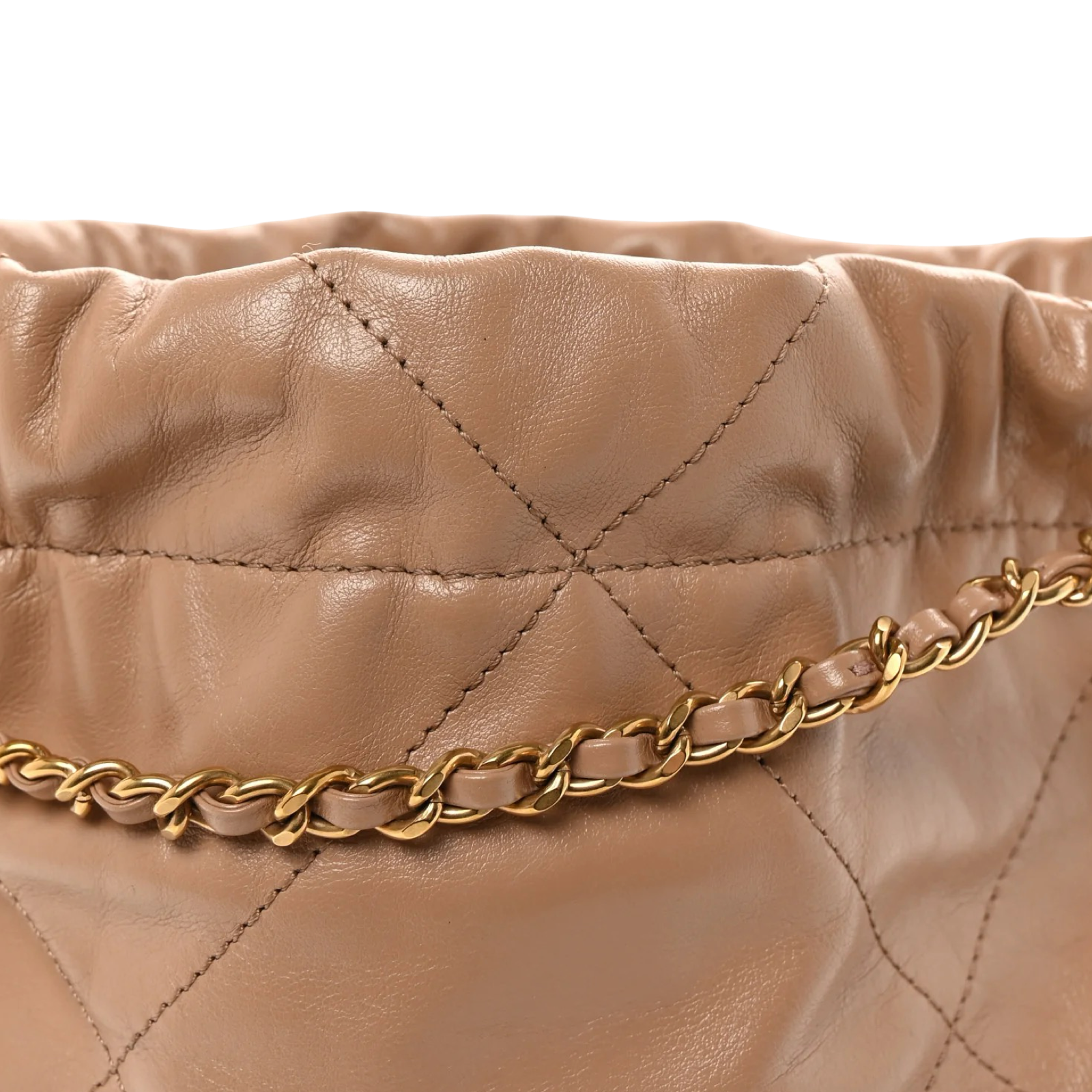 Chanel Quilted Shinny Calfskin Mini 22 Bag - GHW / Dark Beige