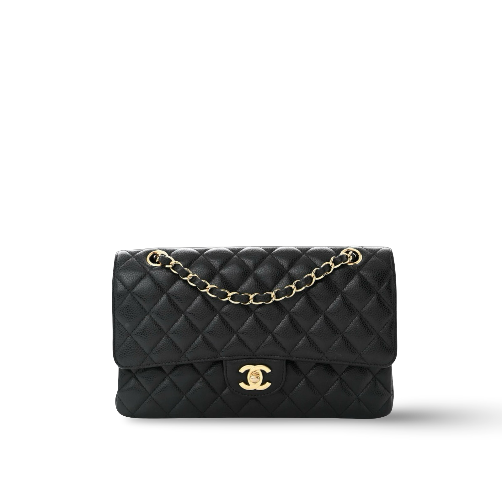 Chanel Qulied Lambskin Medium Double Flap - Black / GHW