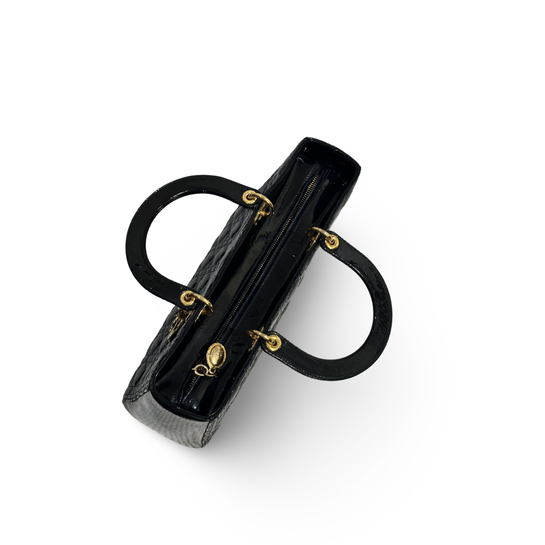 Dior Cannage Patent Large Lady Black Bag